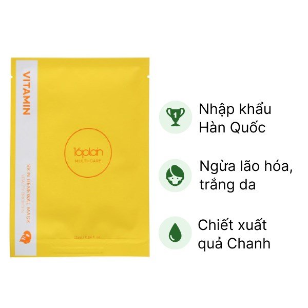 Mặt nạ 16plain Multi-Care Vitamin Skin Renewal Mask miếng 25ml – 07/2024 | nhathuocchangpharma.com